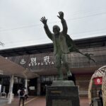帰り際に別府駅で油屋熊八の像を見ました。油屋熊八は「山は富士、海は瀬戸内、湯は別府」のキャッチフレーズで宣伝し、別府観光に尽力された方。両手を高く挙げたポーズは別府駅に降り立つとまず目に入り多くの人が写真を撮っていました。